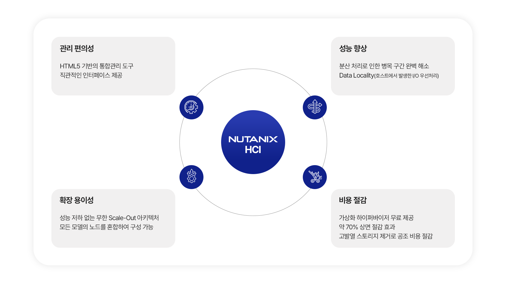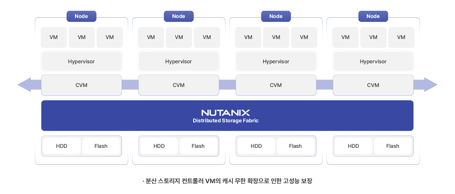 Nutanix HCI는 서버와 스토리지를 하나의 장비로 통합한 가상화 전용 Hyper-Converged System입니다.